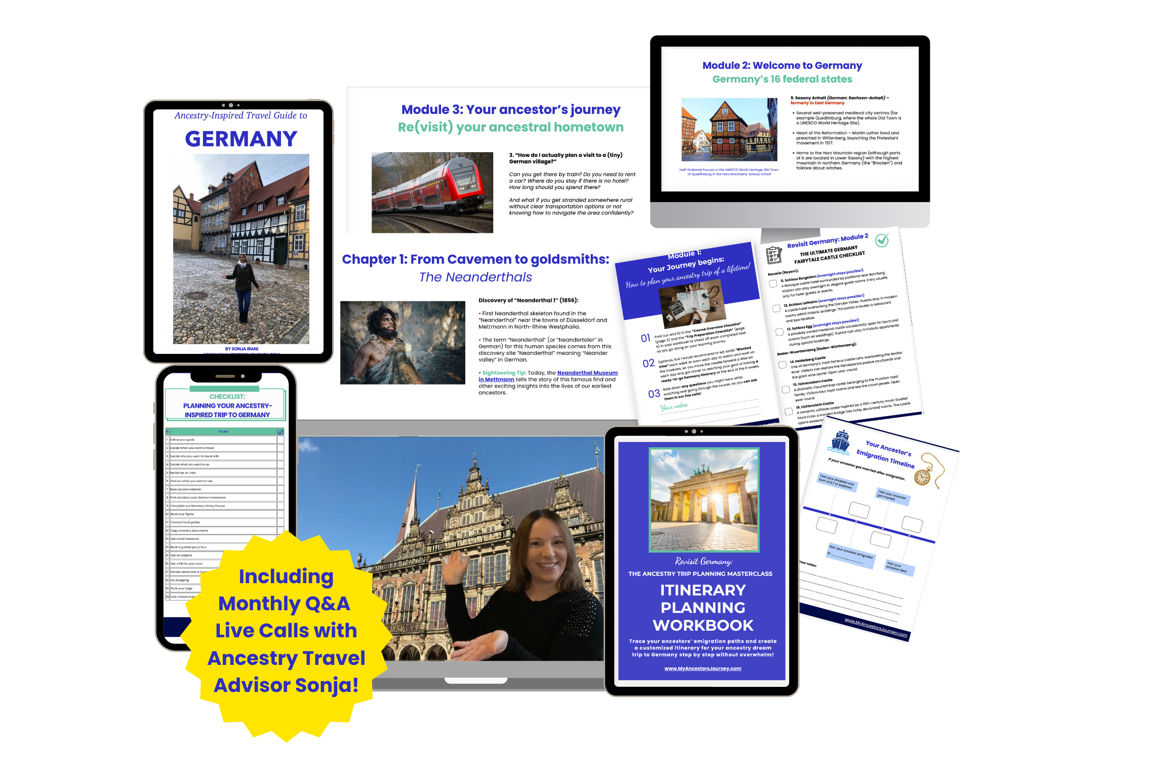 For 12 months, you will have access to video tutorials, monthly live calls on Zoom and a private participant group with other likeminded ancestry travelers. So you can ask all your questions and be sure not to forget anything important!